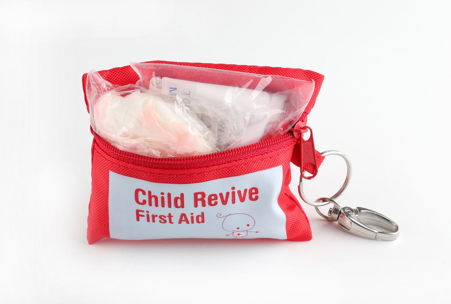 CPR 안면 마스크 키체인이 포함된 빨간색 미니 포장 백 어린이 응급 처치 어린이 부활 응급 처치